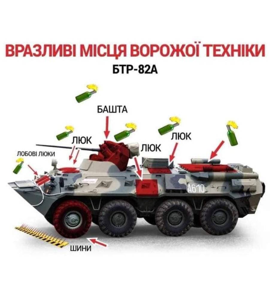A Ukrainian guide on how to use molotov cocktails against a Russian BTR-82