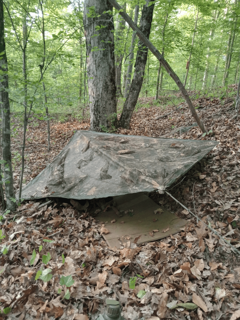 Joe Dolio, however, showed me up by bringing a Jäger Rig made from a thermal tarp with British DPM Camouflage, which worked much better than my solid green tarp. With some cheap walmart hunter’s mesh draped over it, his tarp seemed to vanish into the ground. I will be purchasing one in the near future.